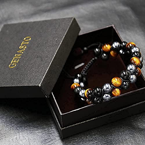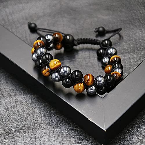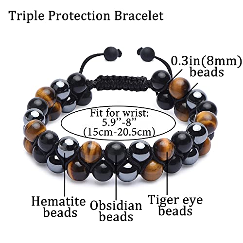 GENASTO - جي اي ان اس تي او سوار حماية ثلاثي من الكريستال العلاجي وعين النمر والزجاج البركاني الاسود والهيماتيت 8 ملم للحظ السعيد للرجال والنساء العقيق