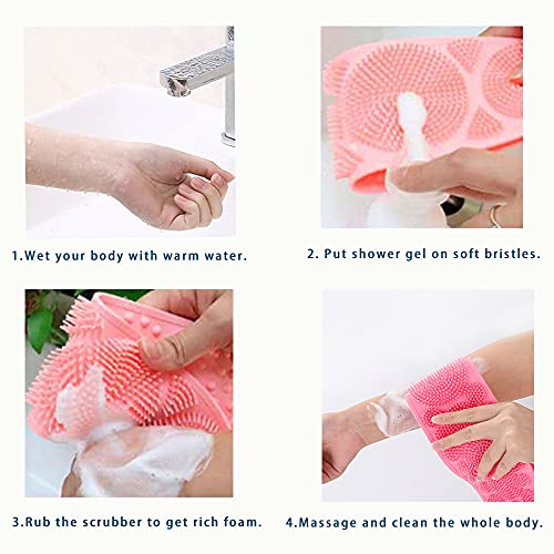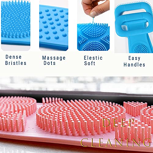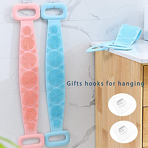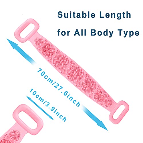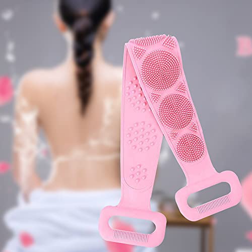Generic - فرشاة تنظيف الظهر من السيليكون للاستحمام، فرشاة استحمام من السيليكون، فرشاة تقشير، أحزمة غسيل الظهر بمقبض طويل، تنظيف عميق للبشرة المصابة بحكة وحب الشباب ورغوة جيدة، سهلة التجفيف (زهري)