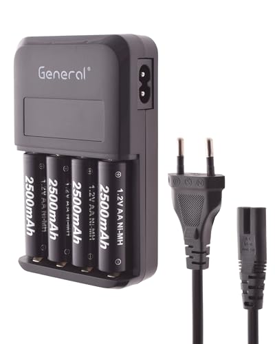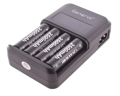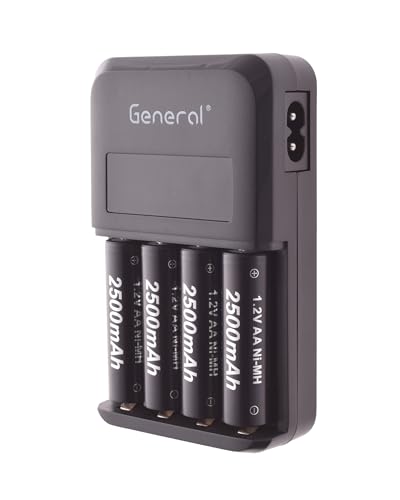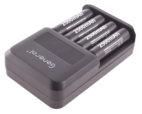 General - شاحن بطاريات بحد أقصى 15 وات بسلك و4 بطاريات - أسود