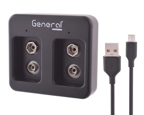 General - شاحن بطارية مزدوج مع كابل، أسود