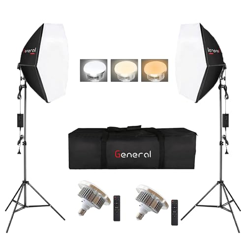 Generic - ستوديو إضاءة ثماني الأضلاع بقوة 150 وات وجهد 220 فولت وحرارة لون 3200 كلفن - 6500 كلفن، لون أسود