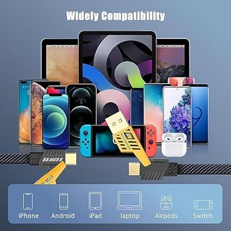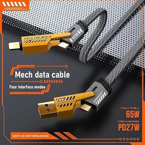 - الراحة وتوفير المال: يوفر الكابل حلاً متكاملاً للشحن في أي مكان، سواء في المنزل أو المكتب أو أثناء السفر. لا حاجة لشراء كابلات إضافية أو البحث عن منافذ مختلفة لشحن أجهزتك، مما يجعل حياتك أسهل ويوفر لك المال.