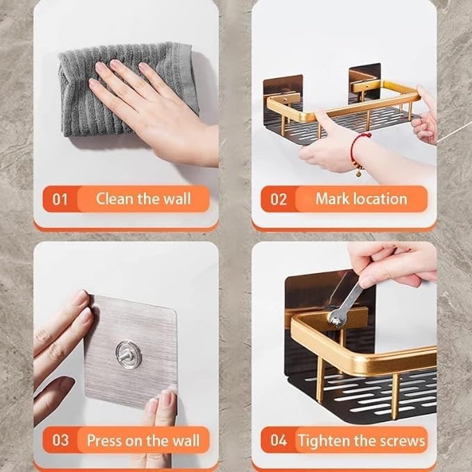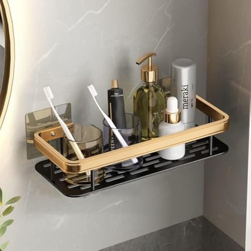 Generic - رف بدون ثقب لتخزين الشامبو، حامل مناسب للمطبخ والحمامات والتخزين في المرحاض، مجموعة اكسسوارات الحمام (حجم سميك، لون ذهبي)، الألومنيوم