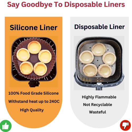 - * 🍔【مادة سيليكون آمنة غذائيًا】- بطانات المقلاة الهوائية المصنوعة من السيليكون الآمن غذائيًا، خالية من البيسفينول أ، غير لاصقة، ولا تخدش، أو تتمزق، مقاومة للأوساخ والحرارة العالية حتى 240 درجة مئوية. لن تؤثر البطانة السيليكون للقلاية الهوائية على الطعام.