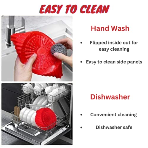 - * 🍔【سهلة التنظيف】- أسوأ جزء من الخبز هو التنظيف دائمًا بعد ذلك. بفضل بطانة المقلاة الهوائية المصنوعة من السيليكون، تصبح العملية أسهل من أي وقت مضى. المواد الناعمة، والمرنة، وغير اللاصقة تعني أنه يمكنكِ قلب السيليكون من الداخل إلى الخارج لصب الأوساخ والبقايا المترسبة بعد الطبخ. يمكن غسلها يدويًا أو حتى وضعها في غسالة الأطباق. باستخدام بطانات المقلاة الهوائية المصنوعة من السيليكون ستجعلين تنظيف المقلاة أسهل من أي وقت مضى.