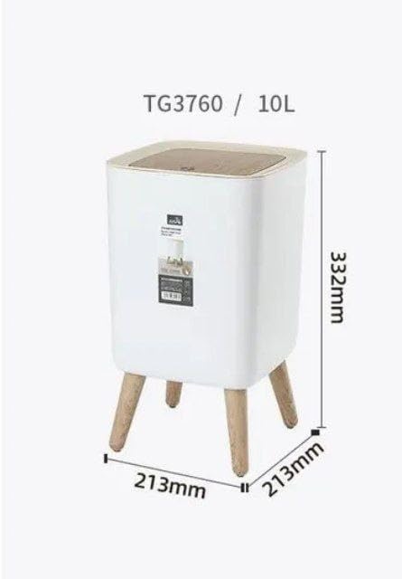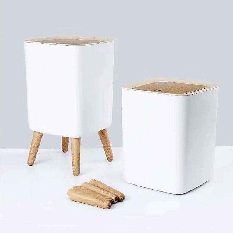 Generic - سلة مهملات بلاستيكية بيضاء سعة 10 لتر مع غطاء ضغط أوتوماتيكي وأرجل قابلة للإزالة، تصميم مربع، سهلة الاستخدام، صغيرة الحجم، مواد عالية الجودة، متعددة الأغراض، مثالية للمنزل والمكتب والسكن الجامعي