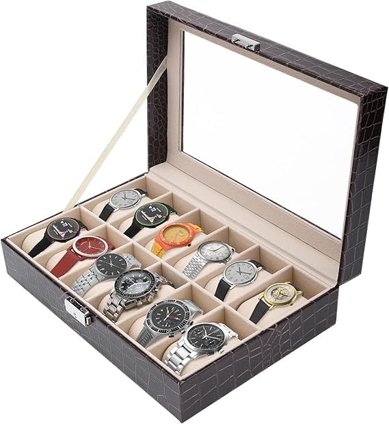 Generic - صندوق الساعات 12 خانة - حافظ على ساعاتك ومجوهراتك بأمان وأناقة. قدرته الواسعة تتسع لاثني عشر ساعة مع بطانة داخلية ناعمة. مثالي للتنقل|من عام