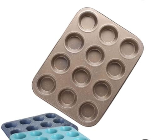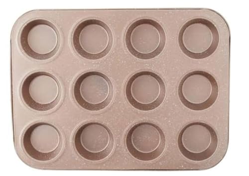 Generic - جيني صينية مافن 12 كوب، ادوات خبز غير لاصقة بلون ذهبي وردي، صينية كب كيك معدنية من فلو