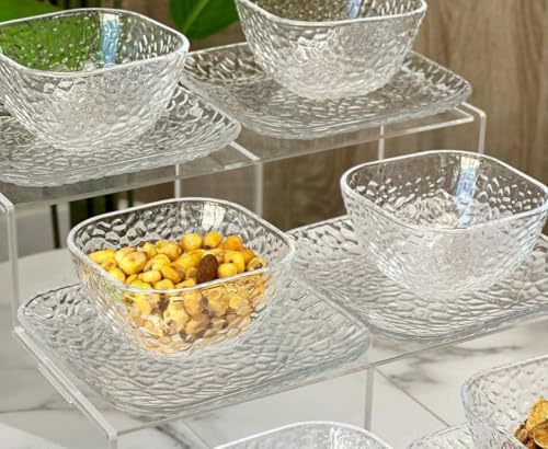 Generic - طقم أطباق عميقة كومبوت مربعة من 12 قطعة مع أطباق حمل، بولات وأطباق حلوى من زجاج شفاف بتصميم مزخرف