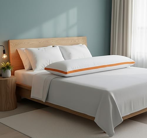 Generic - مخدة طويلة بريميوم طبيه فندقيه فائقة النعومة وداعمة للرقبة والجانب والظهرمن حشو بديل الريش النعام النانو مقاس من 120 الي 180سم خامات مستورد جينيريك مضادة للبكتيريا (2, برتقالي ترندي, 160 سم)