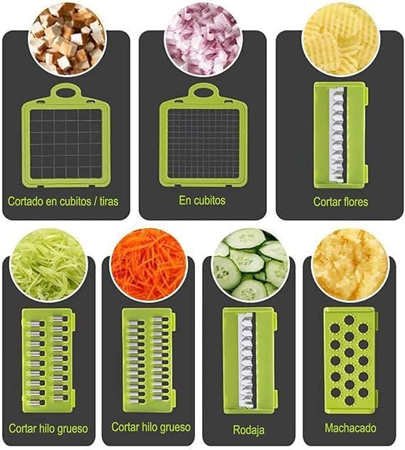 Generic - قطاعة خضروات 14 في 1: قطاعة الجبن والفواكه والكرفس والبطاطس والجزر وسلطة الفاكهة - هيكل بلاستيكي، شفرة من الفولاذ المقاوم للصدأ