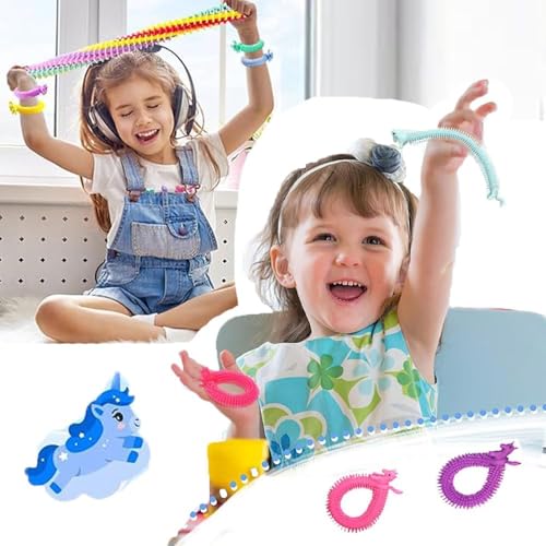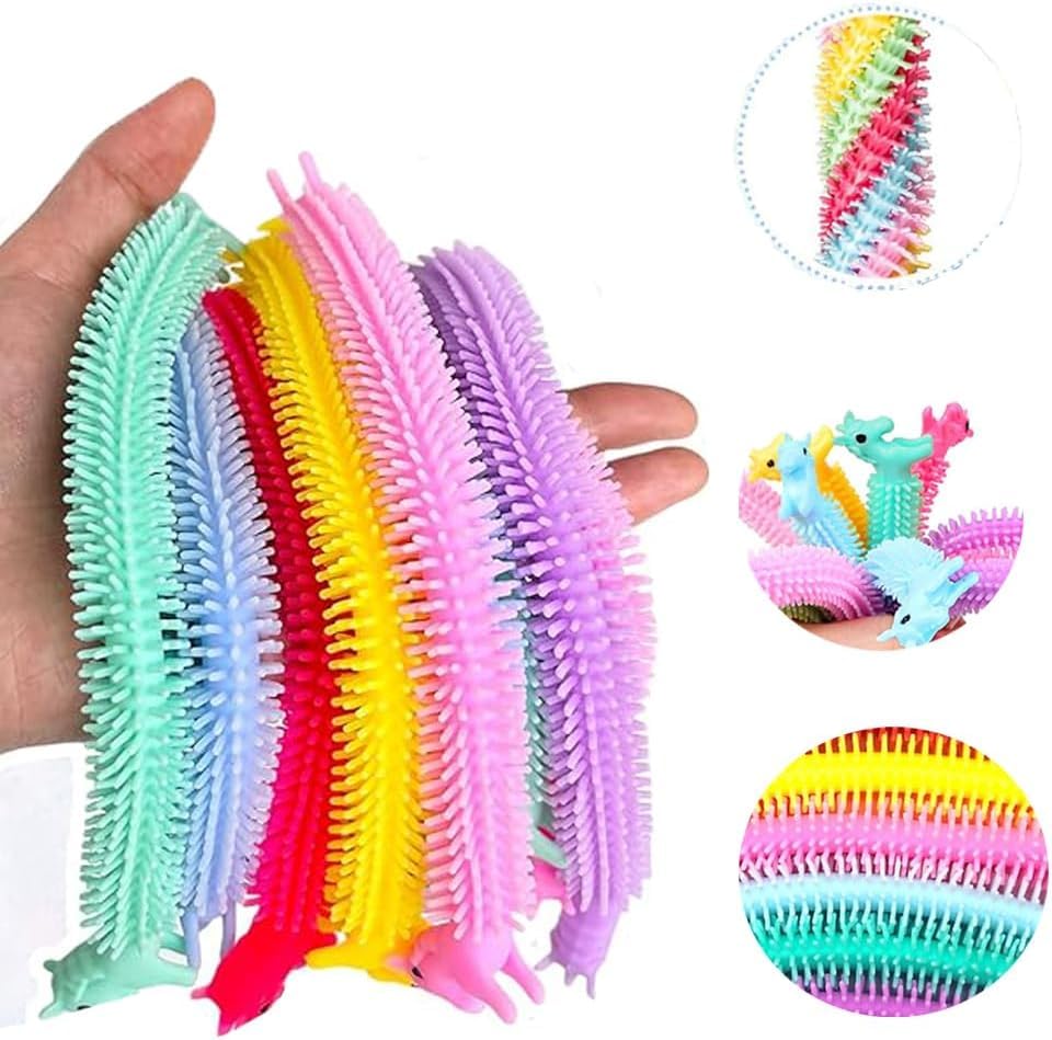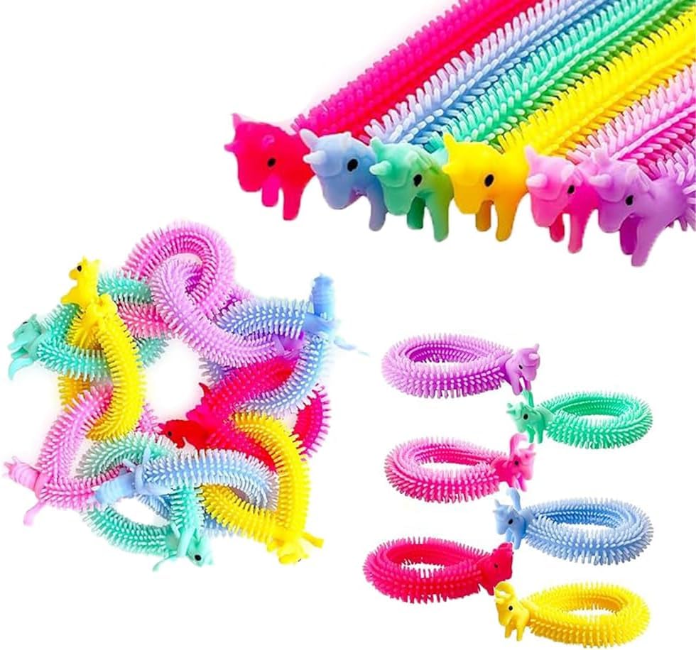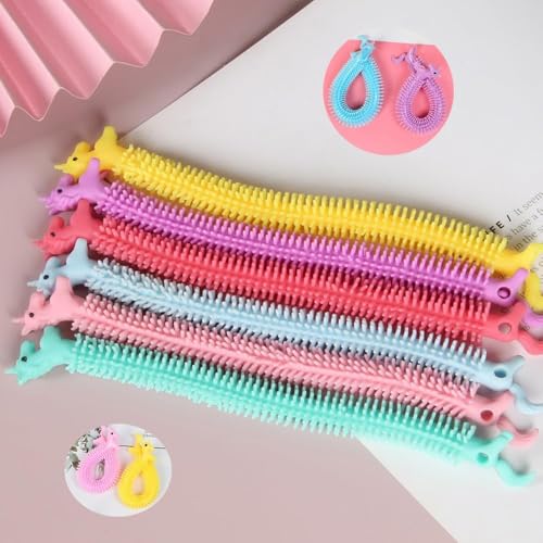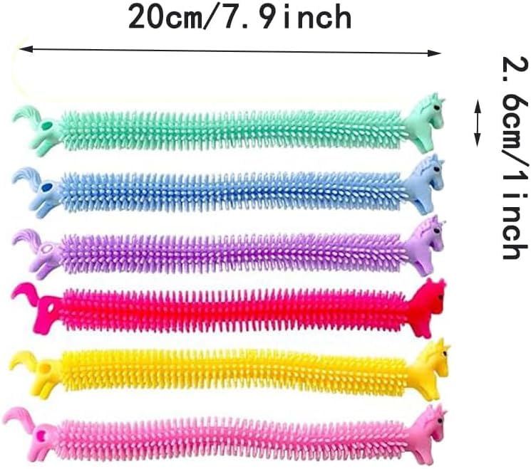 - مجموعة ألعاب أوتار مرنة لتخفيف التوتر والقلق مكونة من 18 قطعة في 6 ألوان، هدايا الحفلات بطابع وحيد القرن للبالغين، ألعاب فدجيت لتخفيف التوتر والتوحد (عبوة مكونة من 18 قطعة)