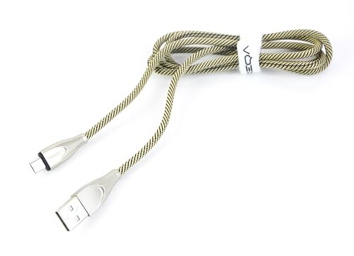 Generic - كابل شحن سريع ونقل البيانات كيو سي 3.0 USB إلى Micro USB 2.0 بقدرة 18 وات 3.1 أمبير، كابل شحن اندرويد مضفر بالنايلون - لون بيج × أسود