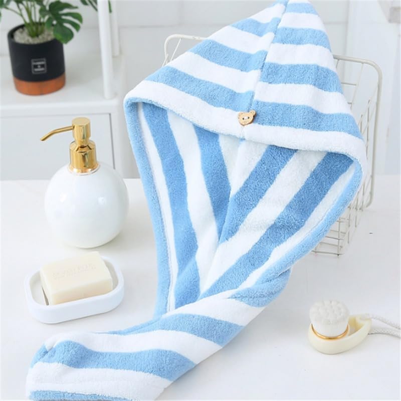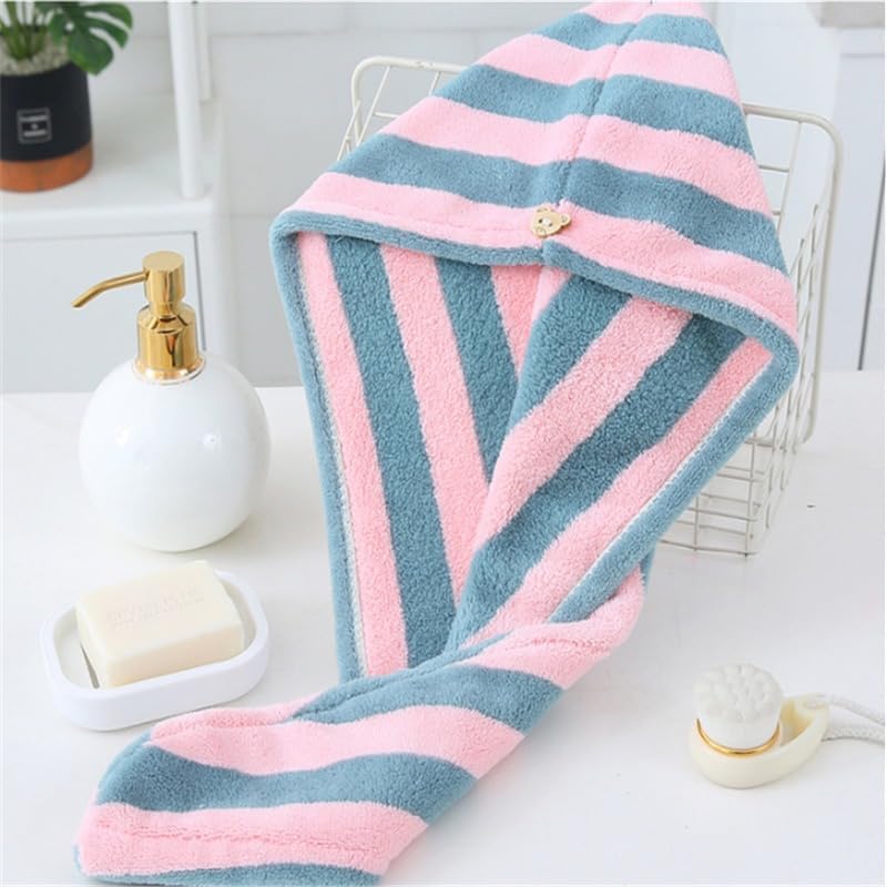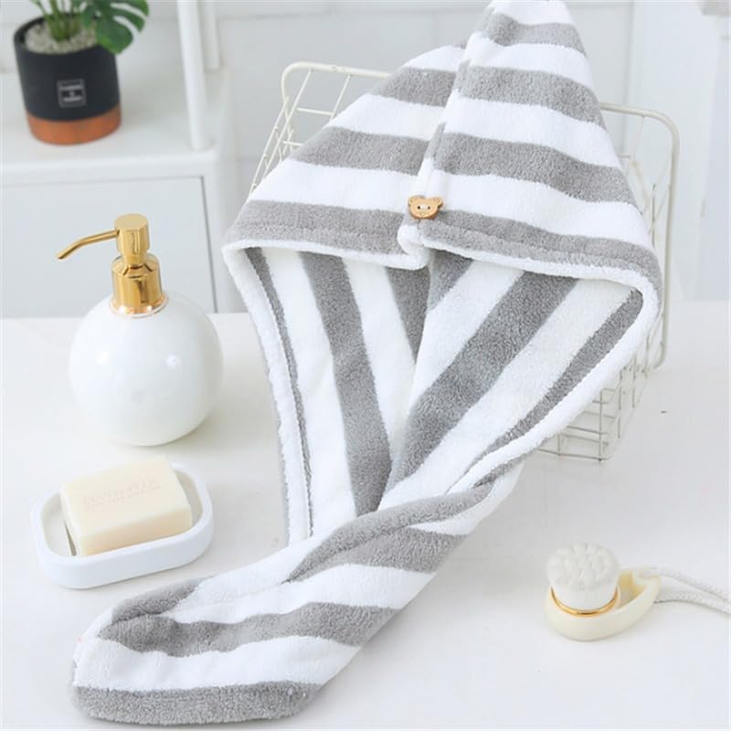 Generic - فوطة شعر سميكة وسريعة الامتصاص من المايكروفايبر بنقشة مخططة، 1 في العبوة