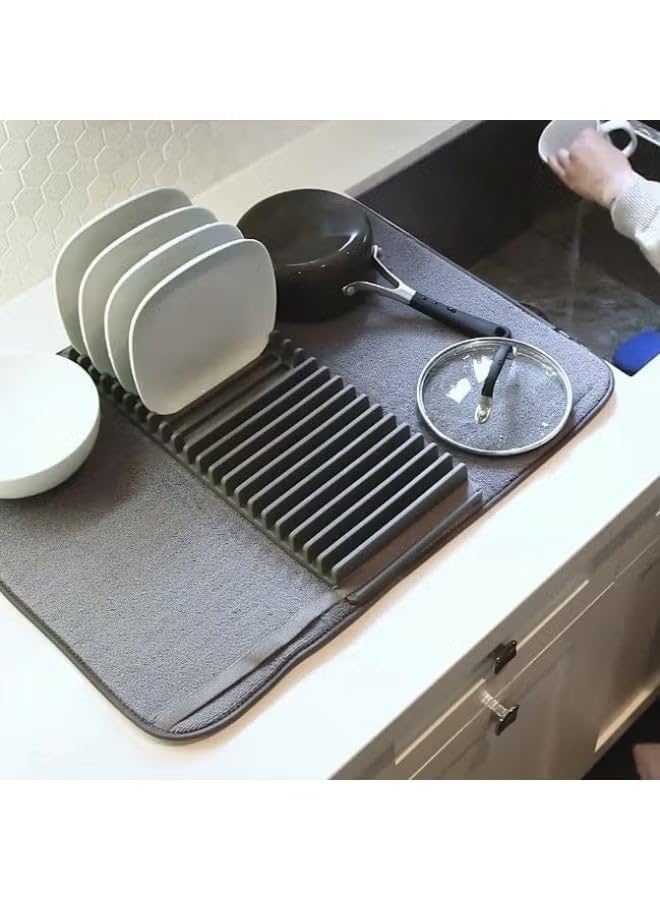 Generic - جيني رف تجفيف الاطباق 2 في 1 مع بساط مايكروفايبر فائق الامتصاص، رف تجفيف الاطباق