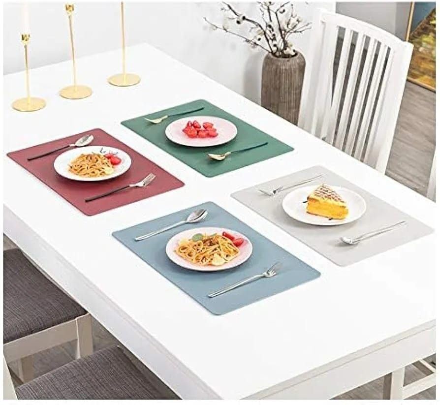 - **جودة المادة**: مفارش الطاولة مصنوعة من جلد البولي يوريثان عالي الجودة، مما يجعلها متينة ومقاومة للتلف.