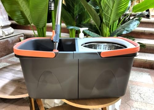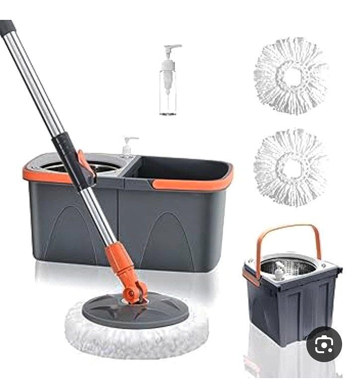 Generic - ممسحة دوارة ونظام دلو 2 في 1 بتصميم قابل للطي، رأس ممسحة من المايكروفايبر، 2 عبوة إعادة تعبئة، رمادي وبرتقالي