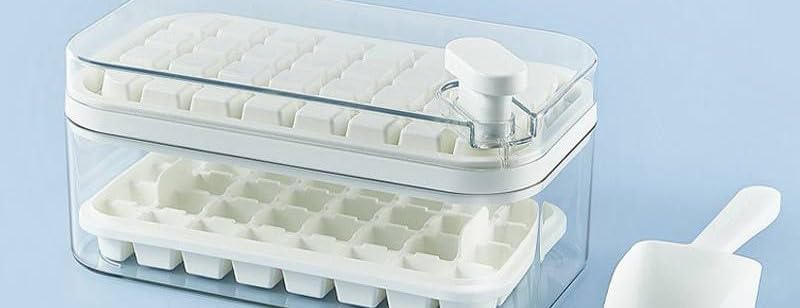 - تصميم مزدوج الطبقات: يتميز بنظام تخزين مكعبات الثلج من طبقتين مع غطاء مريح، مثالي لتنظيم وتخزين مكعبات الثلج بكفاءة