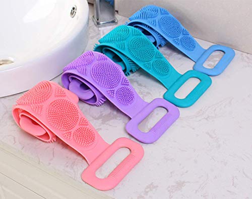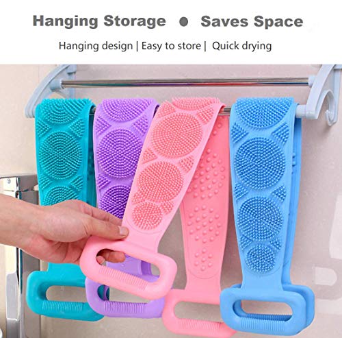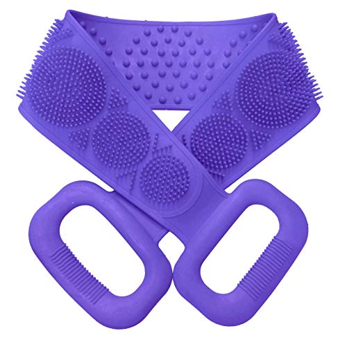 Spaceshoop - عبوتان من فوط تنظيف الجسم للاستحمام والجسم ، ومنشفة طويلة من السيليكون للاستحمام ، وفرشاة حمام إسفنجية من السيليكون للتقشير سهلة التنظيف (أرجواني)