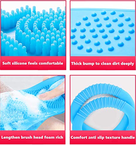 - حجم التغطية الكاملة - فرشاة السيليكون المرنة بطول 28.5 بوصة مناسبة للأشخاص من جميع الأحجام. يمكنك وضع جل الاستحمام أولاً، ثم تحريكه بسهولة وفعالية في كلا الاتجاهين للشعور بالتدليك على البشرة.