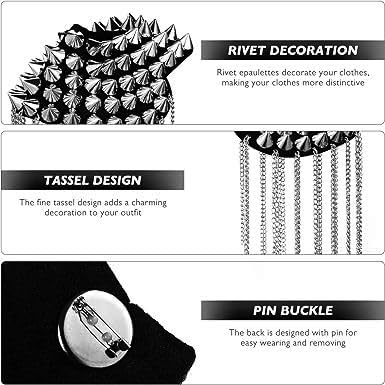 Generic - جيني 2 قطعة برشام الكتف شراشيب عصرية سلسلة ربط الكتف اكسسوارات بدلة موحدة شرابة شارة للرجال والنساء (اسود)
