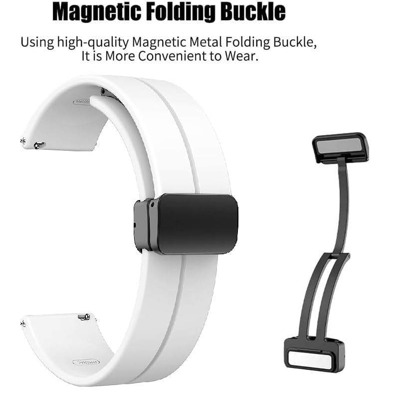 Generic - سوار ساعة مغناطيسي، سوار ساعة رياضي من السيليكون الناعم للنساء والرجال، 22 ملم، بلون (أبيض)