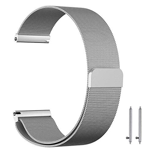 Generic - سوار حلقة ميلانو بديل من الستانلس ستيل بمقاس 22 ملم مع قفل مغناطيسي لساعة سامسونج جير S3 فرونتير وS3 الكلاسيكية وهواوي ووتش 2 الكلاسيكية- فضي اذر للكبار الجنسين