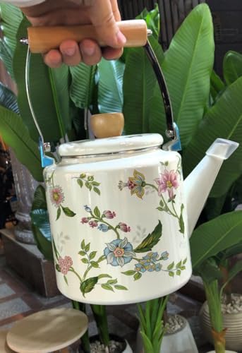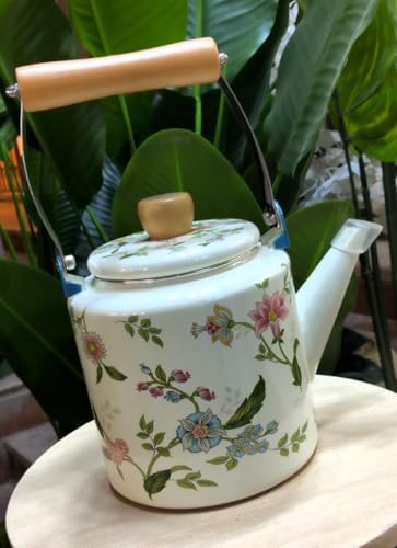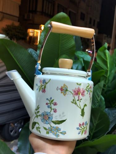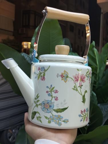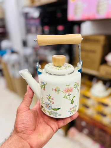 - التصميم: إبريق شاي جميل بنمط زهور مصنوع من الصفائح المعدنية بزخارف زهور زرقاء ووردية أنيقة، مثالي للاستخدام اليومي والمناسبات الخاصة
