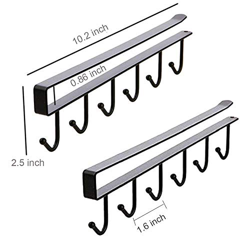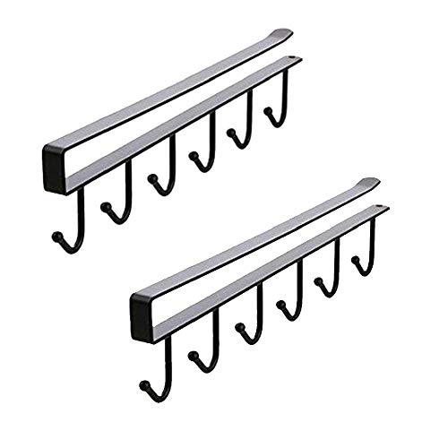 Spaceshoop - رف تخزين متعدد الوظائف بدون مسامير تحت الخزانة بصف واحد لكوب القهوة وخطافات ورف تخزين ورفوف تخزين وربطة العنق والسكارفات من 2 قطعة