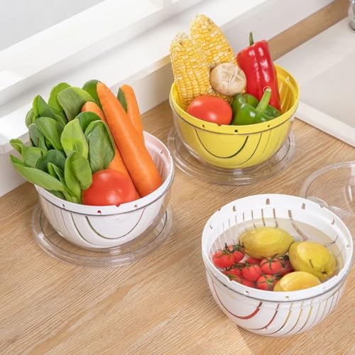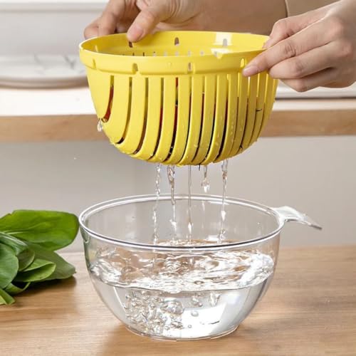 Generic - بولة سلطة اكريليك بتصميم 3 في 1 مع صفاية ومجفف خضروات، طقم تجفيف وقطاعة خضروات متعدد الاستخدامات بتصميم على شكل سمكة - لون أصفر