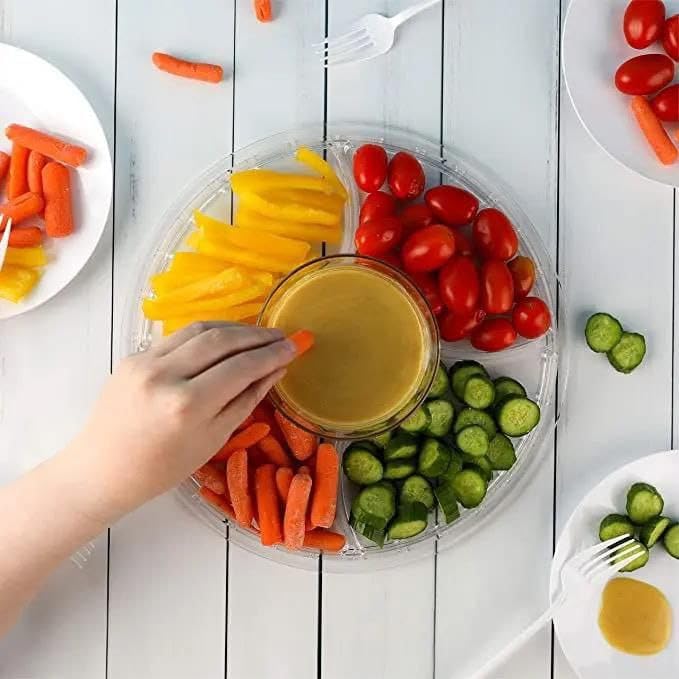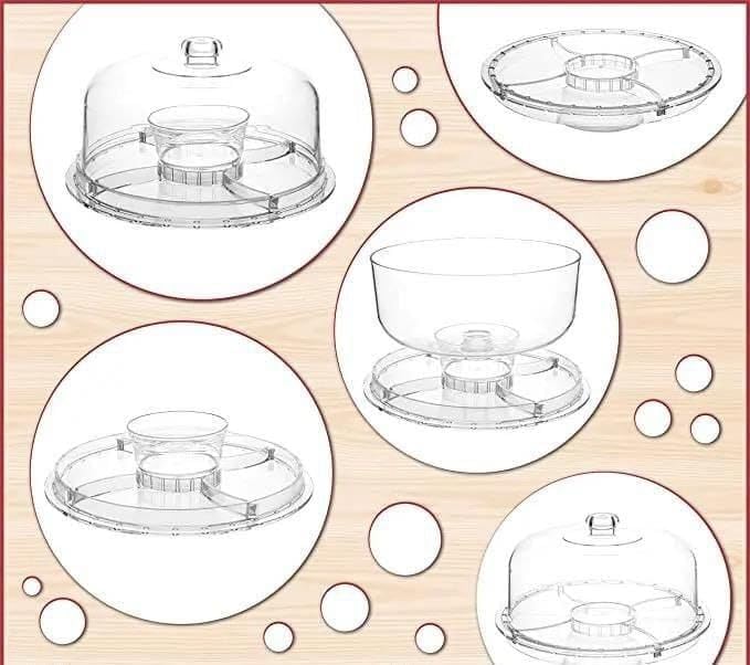 - متعدد الوظائف: يتضمن الطبق الأساسي مساحات تخزين مريحة لتقديم المكسرات والفواكه المجففة والوجبات الخفيفة الصغيرة مع الحفاظ على الطعام طازجًا