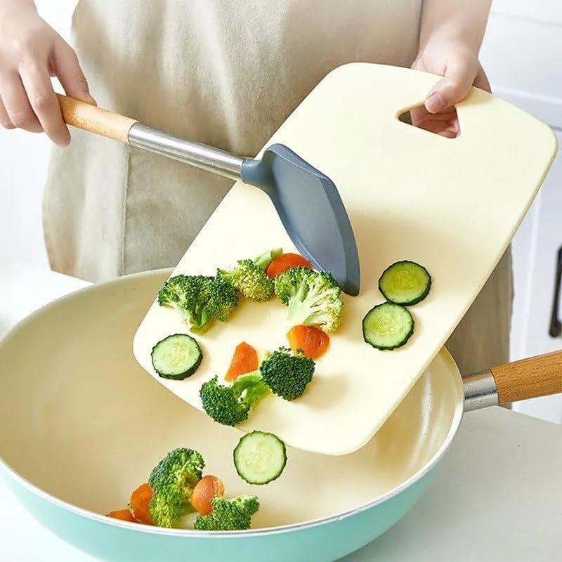 - سهل التنظيف: سطح سيليكون مرن يسمح بتنظيف بسيط ونقل سريع للمكونات المفرومة مباشرة إلى الأطباق العميقة أو الطاسات عن طريق طي اللوح.