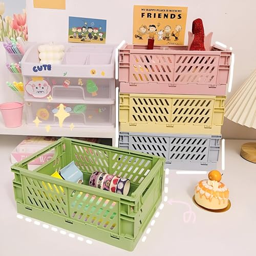 Generic - سلال تخزين بلاستيكية قابلة للطي ومتعددة الوظائف مثالية للحفاظ على مكتبك منظمًا مع صناديق للتكديس للاستخدام كصناديق طاولة ومنظمات لرفوف الأدراج متوفرة في مجموعة من 3 قطع