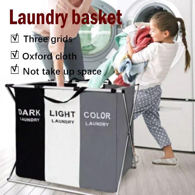 Generic - سلة غسيل الملابس العملية بثلاثة أقسام - مقاس كبير - ليستحق إقتناءها - من جينيريك