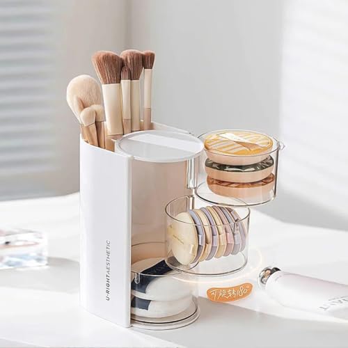 Generic - منظم مكياج دوار من 3 طبقات مع حامل فرشاة، علبة تخزين أكريليك شفافة، بقاعدة دوارة 360 درجة