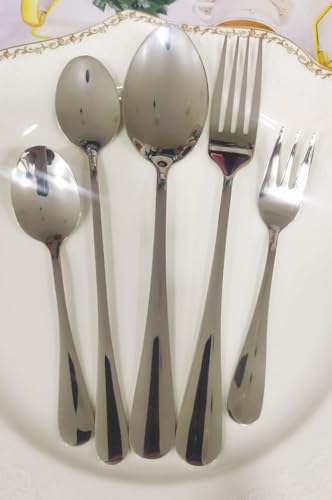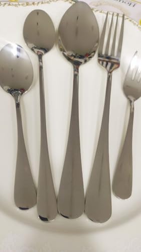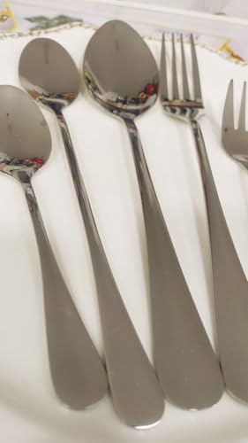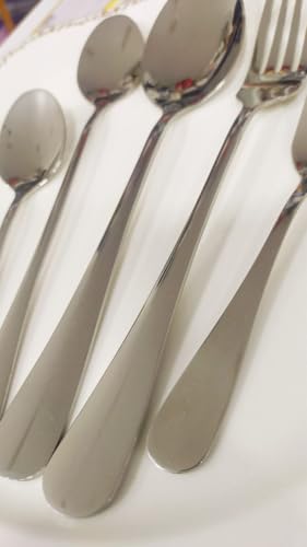 - مجموعة كاملة: مجموعة أدوات مائدة من الستانلس ستيل مكونة من 30 قطعة تتضمن 6 ملاعق عشاء و6 ملاعق صغيرة و6 شوك عشاء و6 شوك للسلطة و6 ملاعق كوكتيل