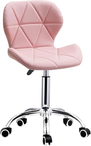 Reyad Group - كرسي مكتب من الجلد الصناعي قابل للتعديل ومبطن، يدور بزاوية 360 درجة مع عجلات وتصميم قابل للرفع ومزود بقاعدة من الكروم، مناسب للمكتب المنزلي وغرفة الدراسة (وردي)