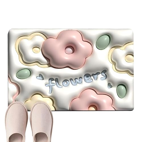 Generic - جيني سجادة حمام ثلاثية الأبعاد: نمط زهور ديسكو ، 60 × 40 سم ، غير قابلة للانزلاق ، سريعة الجفاف ، ميموري فوم