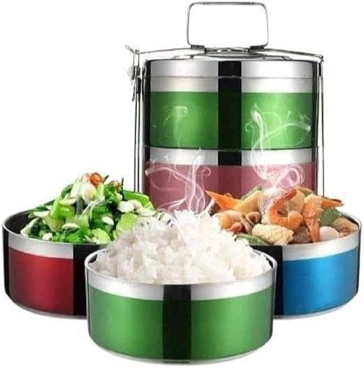 - هيكل فاخر: عمود تخزين طعام من 4 طبقات من الستانلس ستيل مع جزء داخلي من الستانلس ستيل عالي الجودة من أجل المتانة والأداء طويل الأمد. تصميم يحافظ على الحرارة: مصمم خصيصًا للحفاظ على درجة حرارة الطعام والحفاظ على وجباتك طازجة لفترات طويلة، وهو مثالي لإعداد الوجبات وتخزينها.