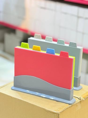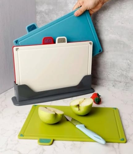 Generic - جيني مجموعة الواح تقطيع بلاستيكية من 4 قطع مع حامل، امنة غذائيا، مقاومة للخدش، الوان متعددة.