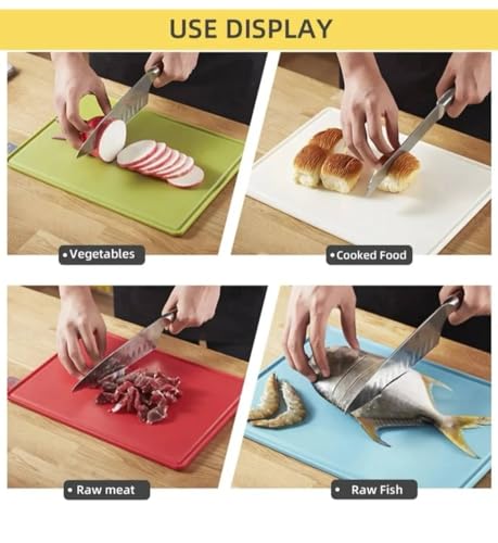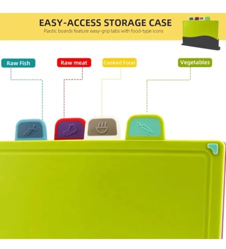 - مجموعة كاملة من 4 قطع: تتضمن أربعة ألواح تقطيع مرمزة بالألوان مع حامل تخزين مريح يحافظ على مطبخك منظمًا وأسطح الطاولات خالية من الفوضى