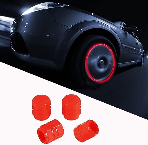 Generic - 4 قطع من اغطية صمام عجلة السيارة المضيئة لصمام الاطارات للسيارات والالموتوسيكلات والشاحنات والدراجات، لون أحمر