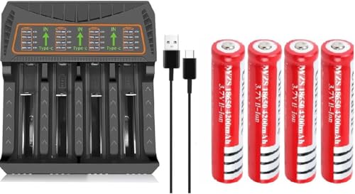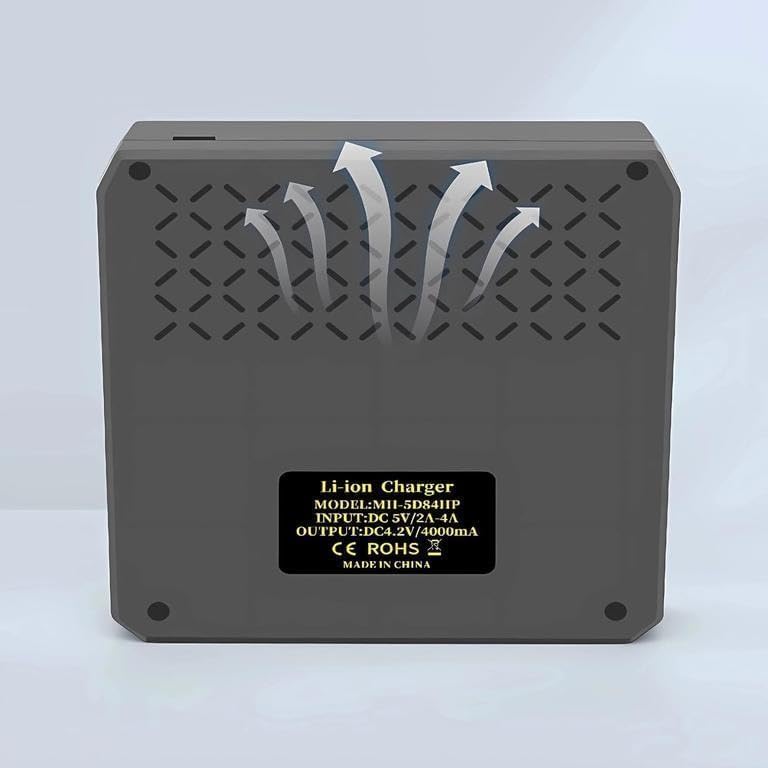 Generic - جيني شاحن ذكي 4 فتحات مع مدخل من النوع سي، شحن مستقل، شاشة LED، شحن سريع وآمن مع 4 قطع ليثيوم