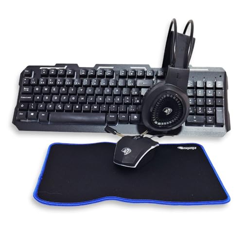 - ماوس ألعاب كومبو 4 في 1 بإضاءة خلفية مع لوحة المفاتيح للألعاب وقاعدة ماوس للألعاب مع سماعة رأس لألعاب الكمبيوتر، لوحة المفاتيح ألعاب بإضاءة خلفية ليد RGB 104 مفتاح