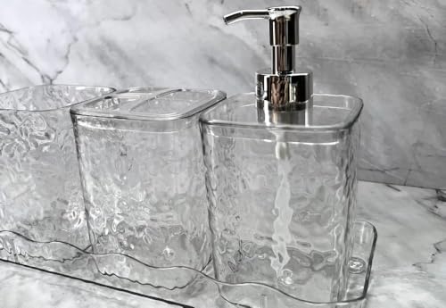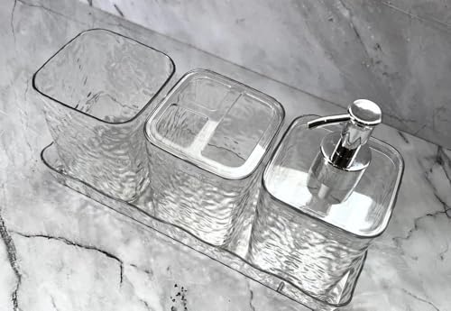 Generic - مجموعة اكسسوارات حمام اكريليك من 5 قطع، زجاج شفاف مع موزع لوشن وحامل فرش أسنان ومنظم ورف وصبانة