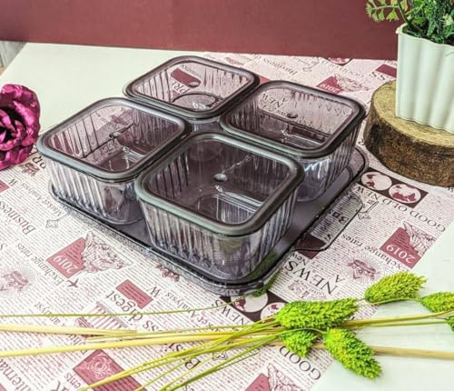 - حجم مريح: كل وعاء بسعة 300 مل، بينما تستوعب الصينية مقاس 20 سم جميع الأوعية الأربعة بشكل مثالي لسهولة التقديم والتخزين