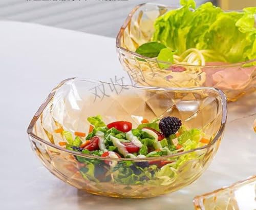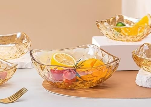 Generic - جيني طقم اوعية زجاجية على شكل خلية نحل من 5 قطع، شكل مربع مع حواف متموجة، لون عسلي، للفاكهة والسلطة والشوربة
