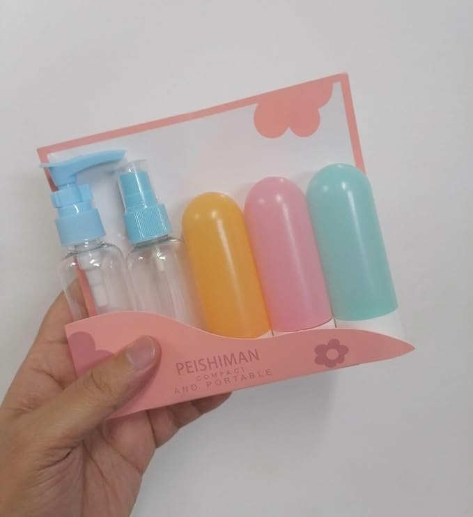 Generic - جيني مجموعة زجاجات سفر قابلة لاعادة الملء من 5 قطع - تتضمن زجاجات مضخة ورش، زجاجات كريم، انابيب ضغط - مثالية للسفر والطيران وشنطة اليد والعناية بالبشرة والشعر