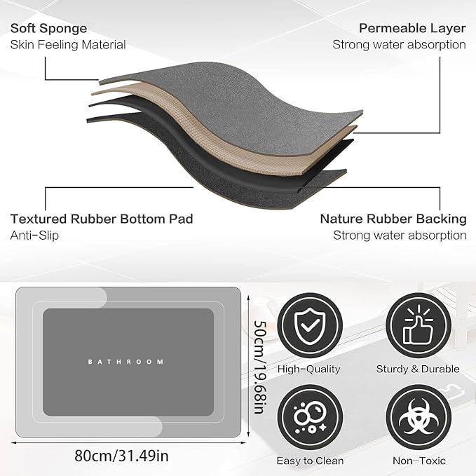 Generic - دواسة أرضية فائقة الامتصاص وطاردة للأوساخ للحمام سجادة مطبخ مضادة للانزلاق قابلة للغسل دواسة حمام من المايكروفايبر دواسة حمام منزلية ماصة مقاس 50 × 80 سم، مطاط