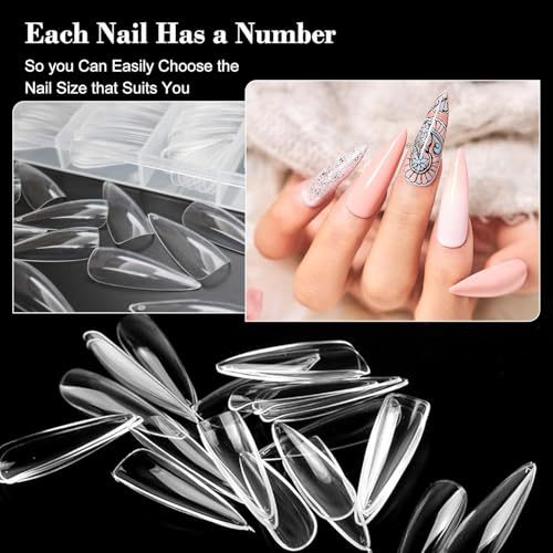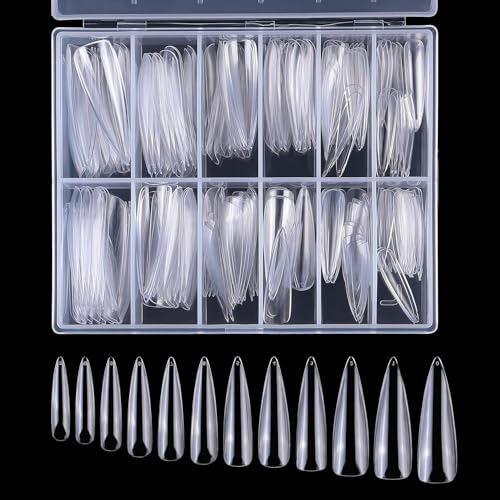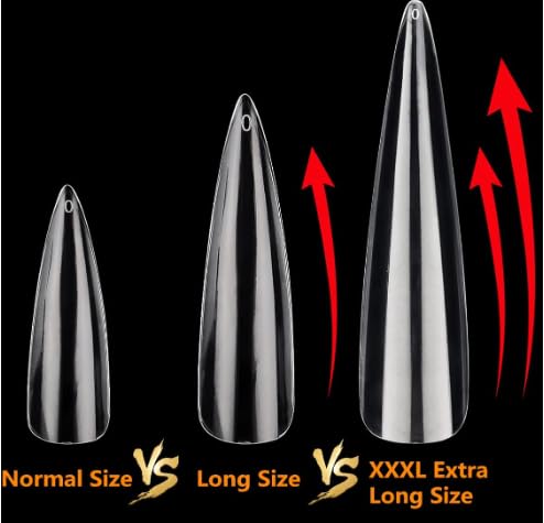 Generic - أطراف أظافر طويلة 2XL شفافة احترافية من الاكريليك 500 قطعة، 10 مقاسات من الأظافر المدببة، أطراف أظافر جل بالضغط لصالونات الأظافر المنزلية